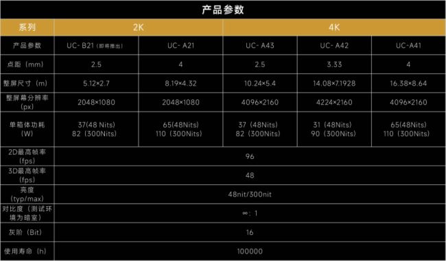 目前,洲明作為中國唯一擁有4項DCI認證的企業,旗下UCine LED電影放映系統擁有5m(即將推出)、8m、10m、14m、16m等不同尺寸規格的LED電影屏,無論是大型影院、小型放映廳,還是家庭影院等應用場景,都能提供出色的視覺效果和觀影舒適度。