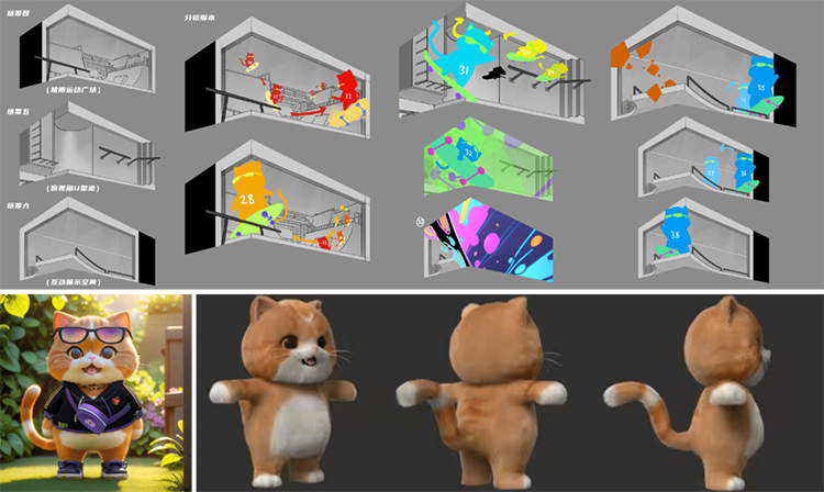 為此,洲明項目團隊從角色設定、形象制作階段開始,考量科技、國風等多種元素,在動作體態與分鏡設計的反復打磨下,最終以三維CG技術形成獨一無二的虛擬IP Mark貓,并賦予其精神內涵?!拔覀優?span style="margin: 0px; padding: 0px; outline: 0px; max-width: 100%; box-sizing: border-box !important; overflow-wrap: break-word !important;">Mark貓準備了運動風、招財貓等多個造型,結合270°雙視角的3D屏,一幅場景就有好幾個打卡點?!敝廾黜椖繄F隊負責人表示,希望借助LED大屏+創意數字內容雙管齊下的形式,打造網紅打卡點,充分展示武漢的創新與藝術風貌,賦能光谷商圈消費活力。