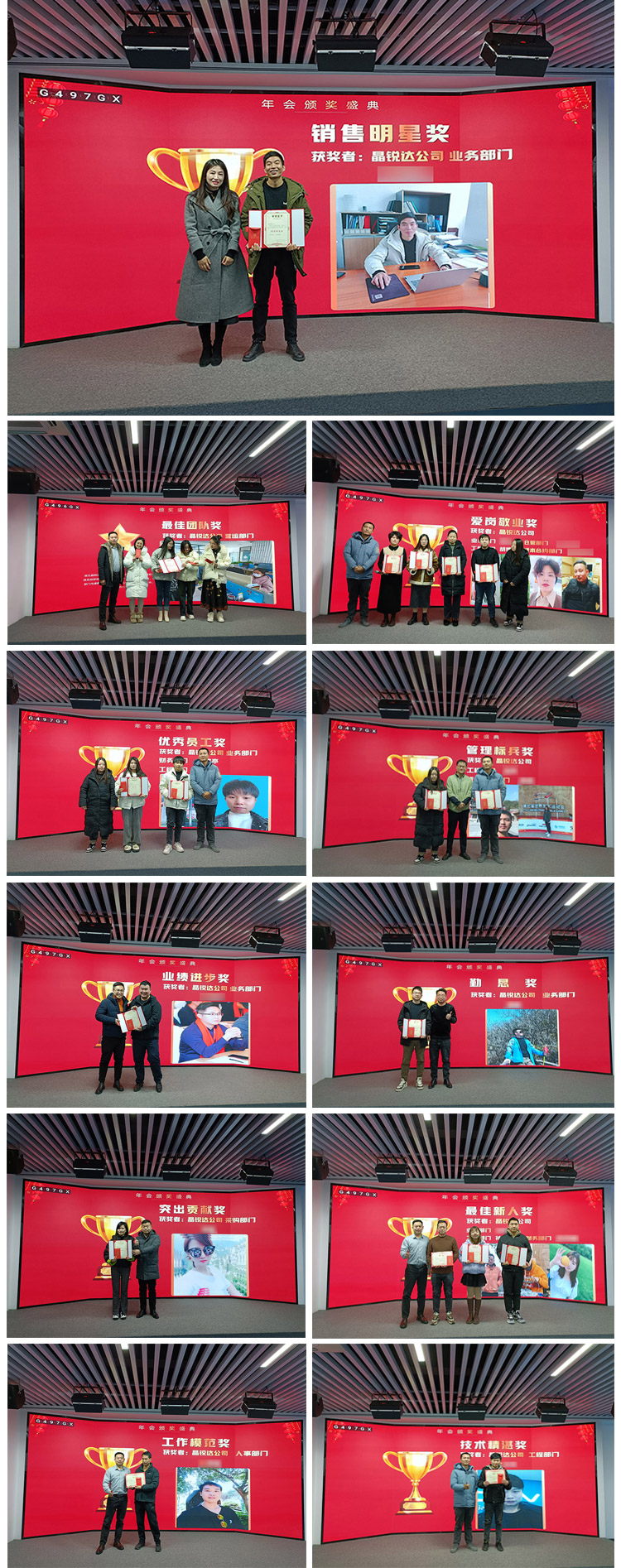 隨后,公司對2023年度表現卓越的個人、團隊進行了隆重表彰,頒發了銷售明星獎、業績進步獎、最佳團隊獎、優秀員工獎、愛崗敬業獎、最佳新人獎、優秀員工等多項表彰獎項。